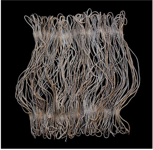 In this exhibition, Tracey transforms industrial raw materials into harmonious works and in affect, transcends all boundaries. Her interwoven pieces reflect nature’s own beauty, turning harsh weathered objects into flowing translucent forms. As the press release perfectly describes, the pieces weave and flow like the patterns in nature -always changing.
